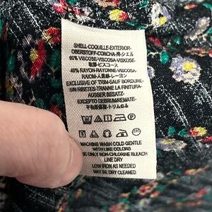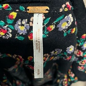 Free People Button Front High Low Shirt Dress Black Floral Mini Long Sleeve (S)