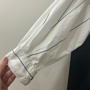 White Free People button up with black stripes. Super comfortable, great for layering!