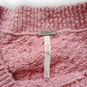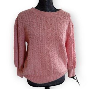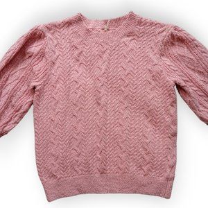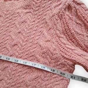 Free People Cable Knit Pink Sweater XL slight puff 3/4 sleeves
