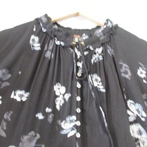 Free People Clover Field Ruffle Long Sleeve Mini Dress S Black Floral Boho 432