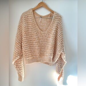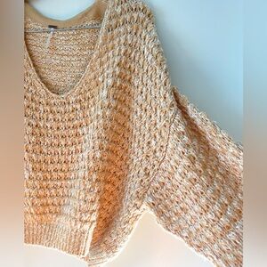 Knit pullover from Free People. Size small but fits up to at least medium. Deep V can be worn normally or off the shoulders. Detailing on the back.