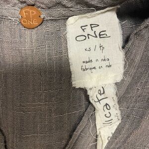 Stylish gray short sleeve dress with a v-neck and tiered design. One of the seams for the shoulder cutout has come unsewn. Please see last photo. Would be a very easy fix if you know how to sew.