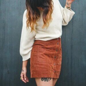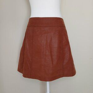 Free People Come A Little Closer Skirt Vegan Leather Toffee Brown Size 10
