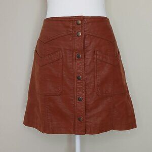 Free People Come A Little Closer Skirt Vegan Leather Toffee Brown Size 10