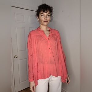 Free People Coral Oversized Asymmetrical V neck Blouse