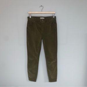 Free People Corduroy Pants Women's Size 27 Olive Green Brown High Rise Stretch