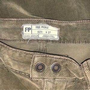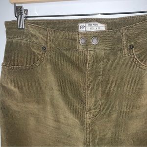 Free People Corduroy Pants Women's Size 27 Olive Green Brown High Rise Stretch