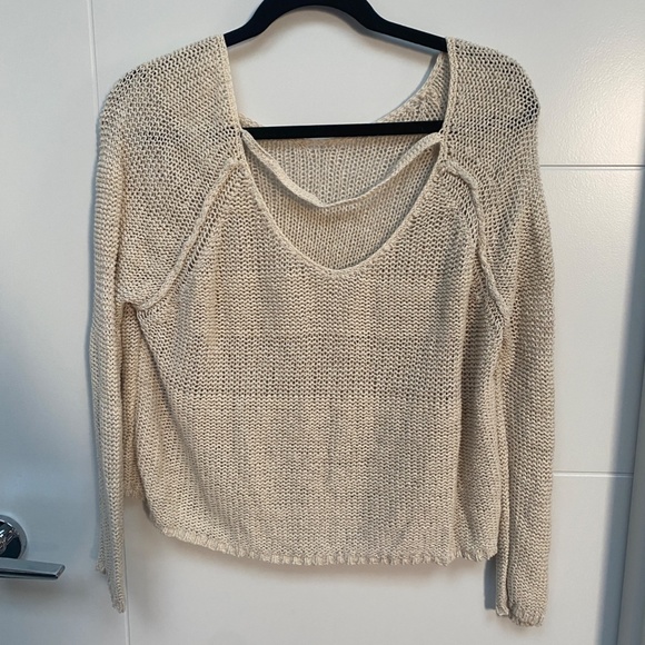 Free People Woven Knit Beach Sweater in Beige/Cream. Long Sleeve, Relaxed slightly Boxy/Cropped fit.