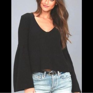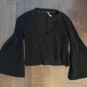 Free People Cropped Wide Sleeve Black Sweater XS SO SOFT