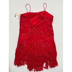 Free People Crystal Clear Mini Fringe Sequin Dress Fiery Red