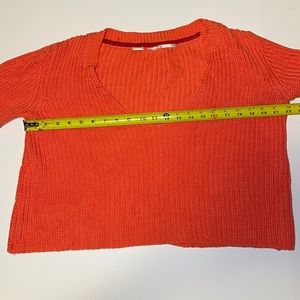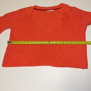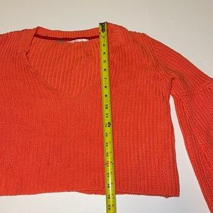 VGUC Free People “Damsel” coral cropped sweater with oversized bell sleeves in women’s size medium (M).