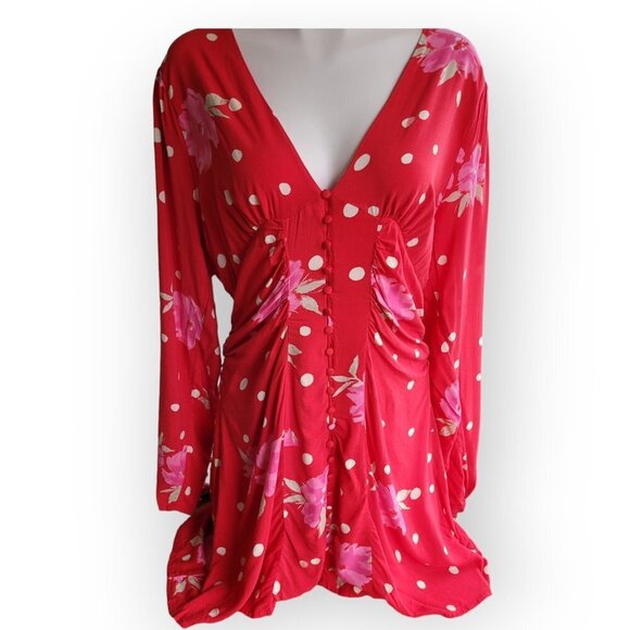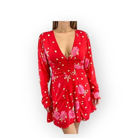 Free People Date Night Mini Plunge Dress Viscose Strawberry Combo EUC size M/L
