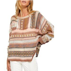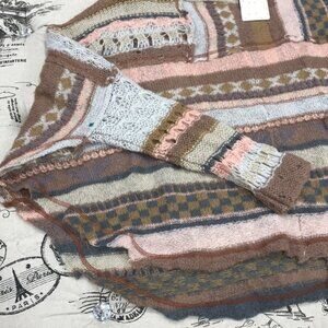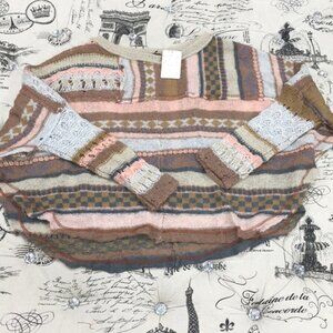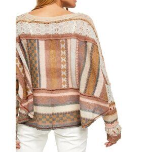 Stay cozy during the colder season when you slip on this knit poncho that is detailed with a colorful striped print.