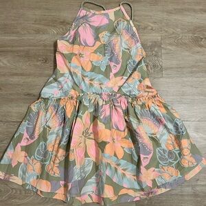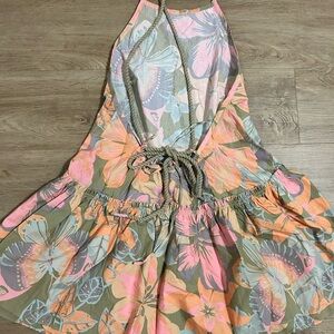 Vibrant floral halter dress with a playful design. Perfect for summer outings. New without tag