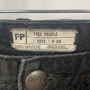Looking for a pair of jeans that are both trendy and comfortable? Look no further than the Free People Distressed Faded Black Raw Hem Knee Cut Skinny Jeans in size 26!