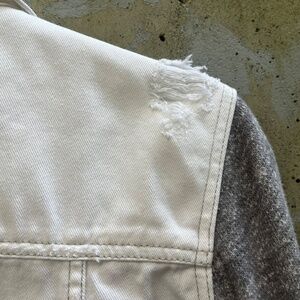 Free People Distressed Knit / Denim Jacket, Gray / White Jean, Medium