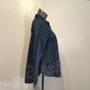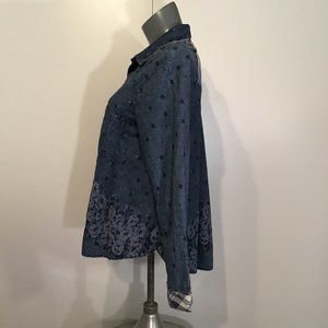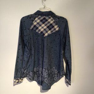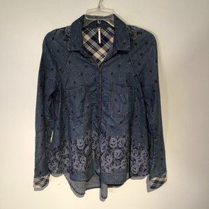 Free People Dottie Over You Chambray Button Up Floral and Plaid Blouse Size S