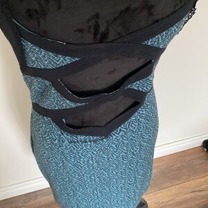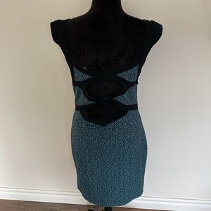 Beautiful lined dress by Free People with cap sleeves, cut outs at the back. Size Medium. Form fitting.