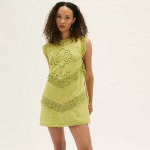 Free People Dress Women's Medium Light Blue Floral Ruffle Wrap Flutter Sleeves