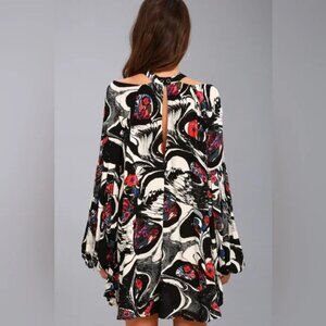 Free People Drift Away Black Print Cold Shoulder Mini Dress/ Tunic- Size Small