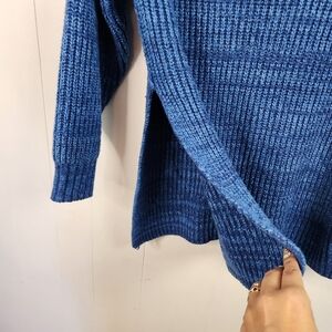 Free People Eleven Chunky Knit Blue Long Tunic Sweater Turtleneck Size XS Winter