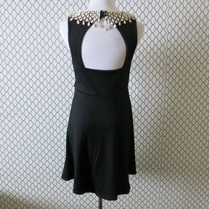 Free People Embroidered Neck Open Back Sleeveless Black Dress - Size Small