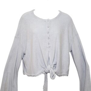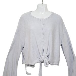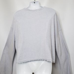 Free People Emma Henley Slouchy Terry Knit Cropped Top Women's Large Blue Grey