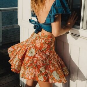 Free People End Of The Island Godet Mini Floral Skirt Size 0