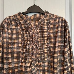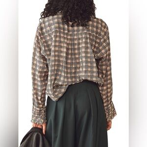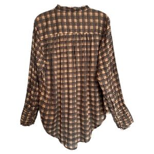 Free People FP One Plaid Miles Tuxedo Shirt Tunic Flowy Women's Size Small READ