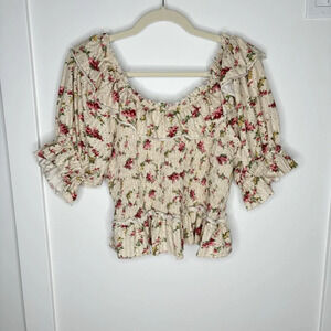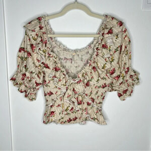 Free People Favorite Girl Floral Ruffle Top Blouse Size M Boho Cottage Prairie