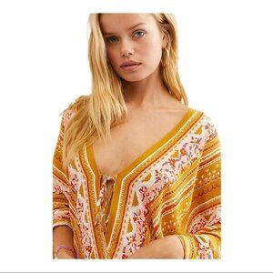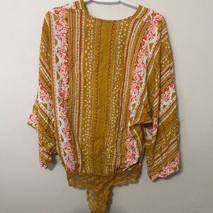 Free People For You Boho Bodysuit Size Small Pullover V-neck Long flare sleeves Oversized Fit