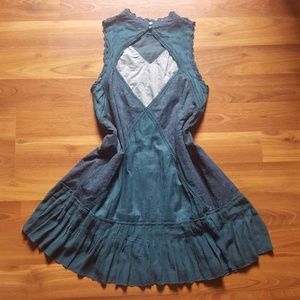Free People Forest Pine Green Angel lace Crochet Pleated summer cottagecore