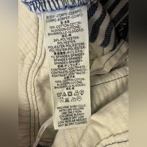 Striped Blue/Cream high rise pants skinny leg slight crop button fly 2 front pockets decent stretch