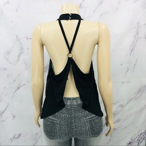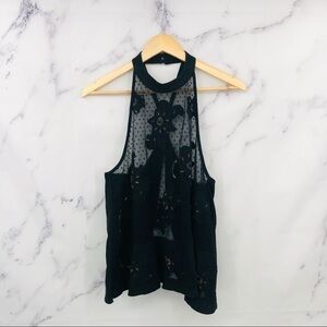 Free People Frankie Sheer Lace High Neck Open Back Tank Top Black