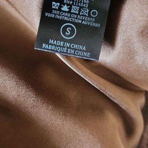 Hi! Can you tell me what material this is? It’s a Small, but how’s the fit? Does it have any spots/worn areas? Thanks!