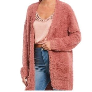 Free People Fuzzy Faux Fur Open Cardigan Dusty Pink Size Extra Small