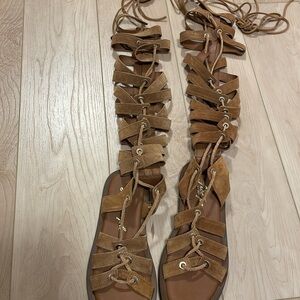 Free People Genuine Suede Sun-Chaser Tall Gladiator Sandals, sz 36 / 5.5