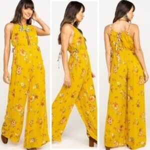 Free People Georgia Floral Wide Leg Yellow Floral Jumpsuit Small