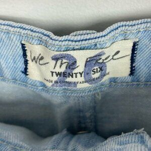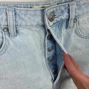 Free People Going Rogue Denim Skirt Size 26 Button Fly Light Wash Raw Hem Boho