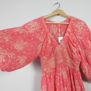 Free People Golden Hour Smocked Bodice Cotton Maxi Dress XS Pink Boho Summer 362
