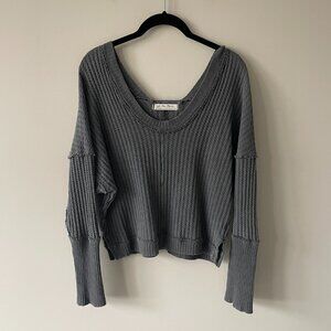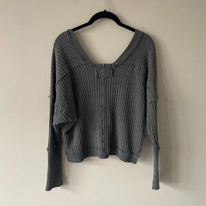 Cozy V-neck sweater. Textured knit design. Perfect for layering.