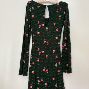 Free People Green Bell Sleeve Green Floral Mini Dress (XS)