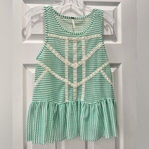 Free People Green Sheer Crochet Tank, with Ivory Lace Stripe, Peplum, Size XS