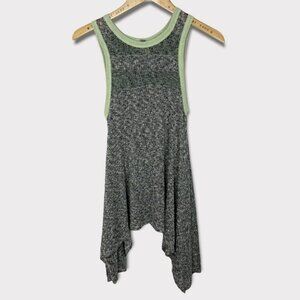 Free People Oversized Sleeveless Tunic in Women's Size XS. High neck. Grey with green trim. Perfect as a lightweight beach coverup or mini dress. Cotton and poly. Machine washable. Very good pre-loved condition. No visible flaws.