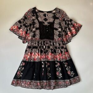 Free People Haden Bell Sleeve Lace Embroidered Mini Dress