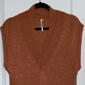 Free People Hannah Oversized Tunic Sweater Vest Knit Bronze V-Neck Size XS