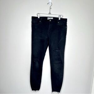 Free People High Rise Stretch Skinny Distressed Jeans Raw Hem Black Size 28