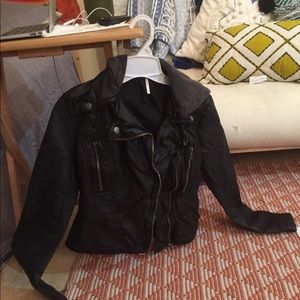 New with tags, a little too tight around the shoulders for me, detachable hood, perfectly distressed and a really cute casual fall moto jacket! (And animal friendly too!).