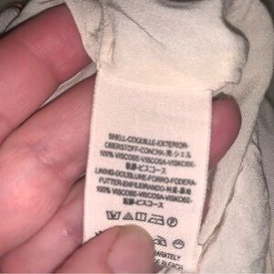 The tie at the front is torn at the bottom seams. The tie was attached a bit along the front, now it’s only attached at the side seams.