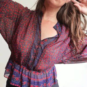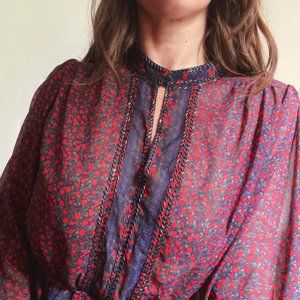 Semi-sheer with a light weight feel. Isabel Marant, boho throwback vibe. Decorative beading, two button closure at neck and sleeves.